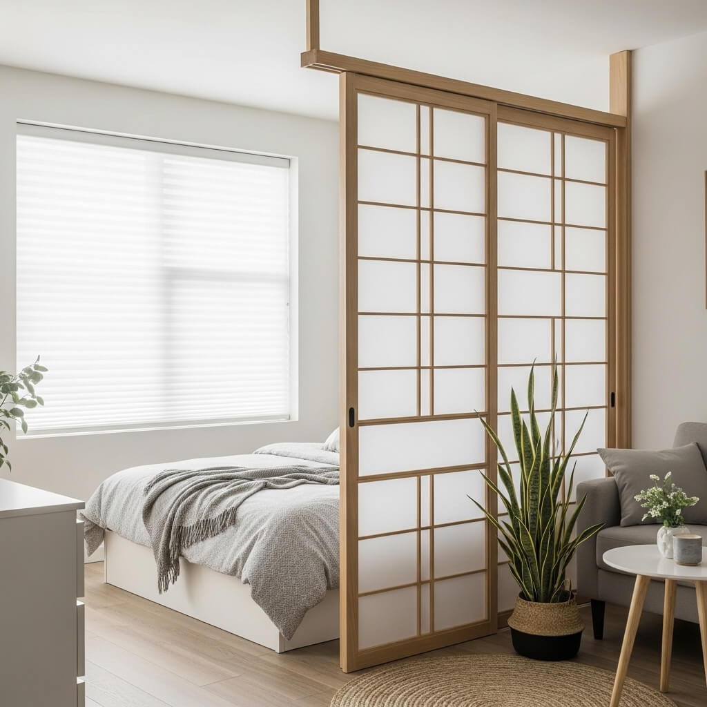 - Space-Saving Benefits: Heavy curtains can make small windows feel bulky and take up space. Shoji-style blinds or sliding panels sit flat against the wall. In a studio, a folding Shoji screen is a sleek way to divide your sleeping area from your living space.