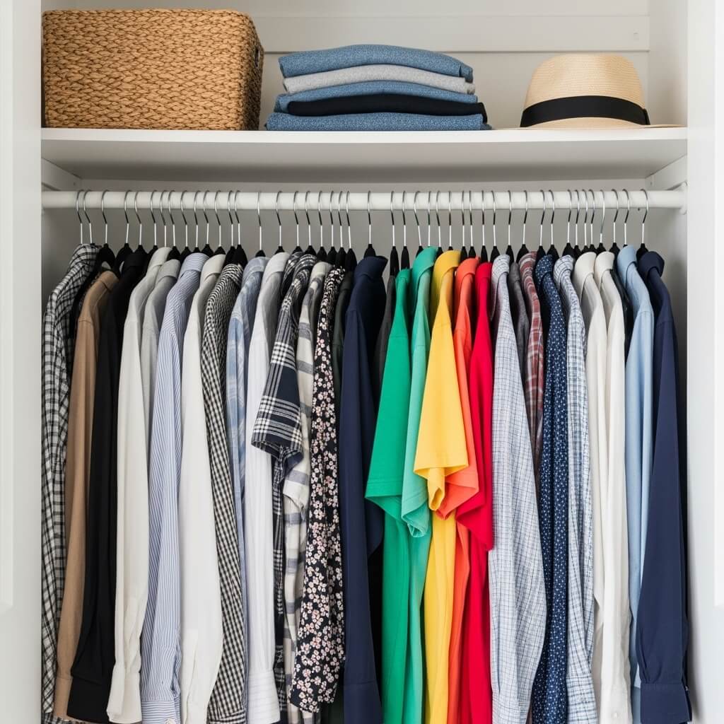 - Group your hanging clothes perfectly by specific color and season.