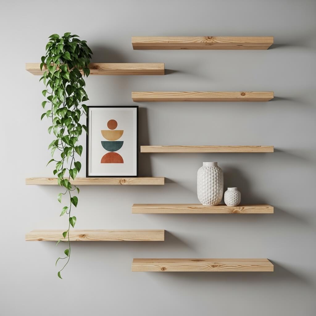 - The Execution: Install simple, floating shelves made from raw wood or light pine.