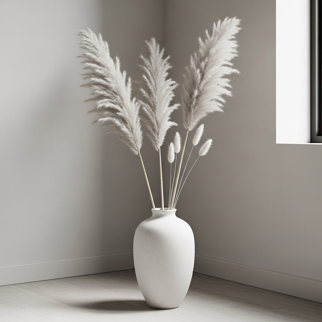 - The Accessory: Use large stems of dried pampas grass or bleached bunny tails.
