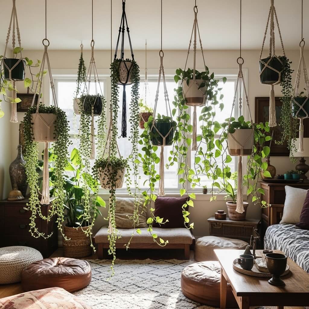 - The Aesthetic: The hanging cords draw the eye upward, while the leaves add life without clutter.
