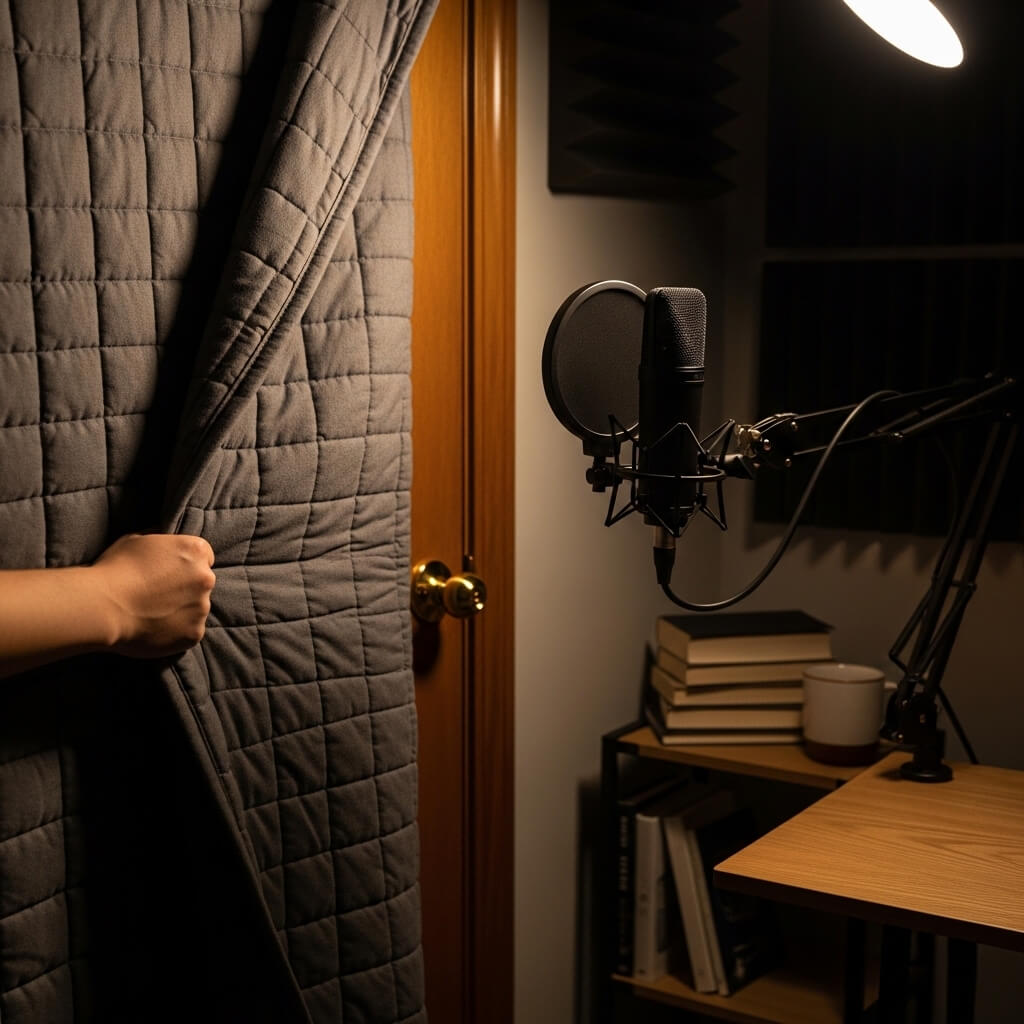 I hang heavy blankets over my door to block out annoying roommate noises.