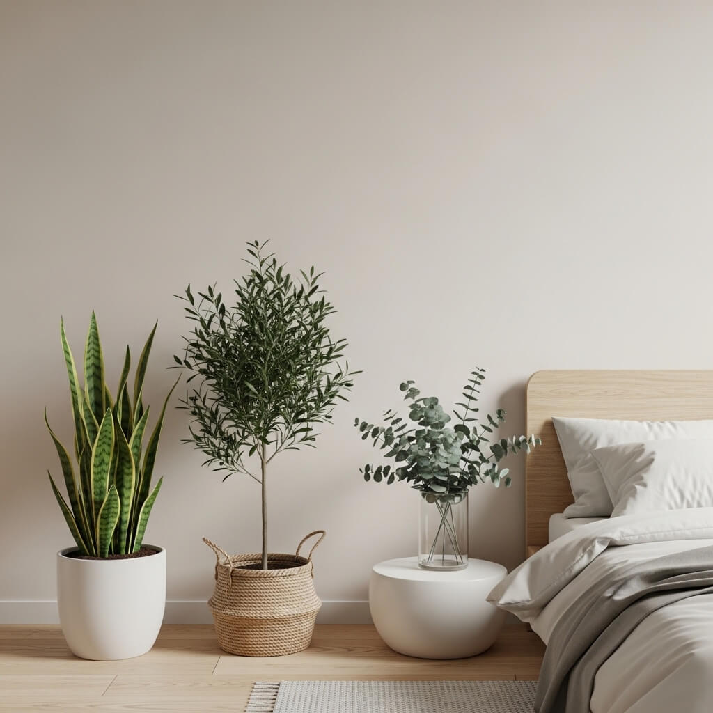 - The Plant Choice: Avoid busy, overflowing, or visually messy plants. Opt for something structured and clean, like a Snake Plant (Sansevieria), an Olive Tree in a simple woven basket, or a minimalist clear glass vase holding a few fresh stems of eucalyptus.