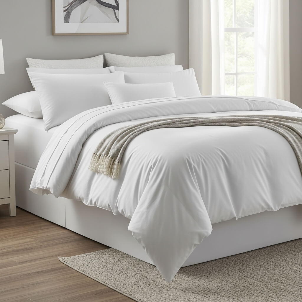 - The Base Layers: Ditch the busy patterns and colorful sheets. Invest in high-quality, bright white percale cotton or bamboo sheets. They offer a crisp, cool texture that looks inherently “clean.”