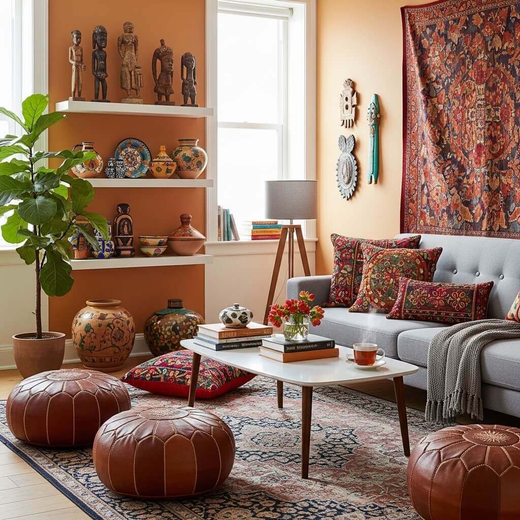 - Incorporate carved wooden stools: Use them as handy, mobile side tables.