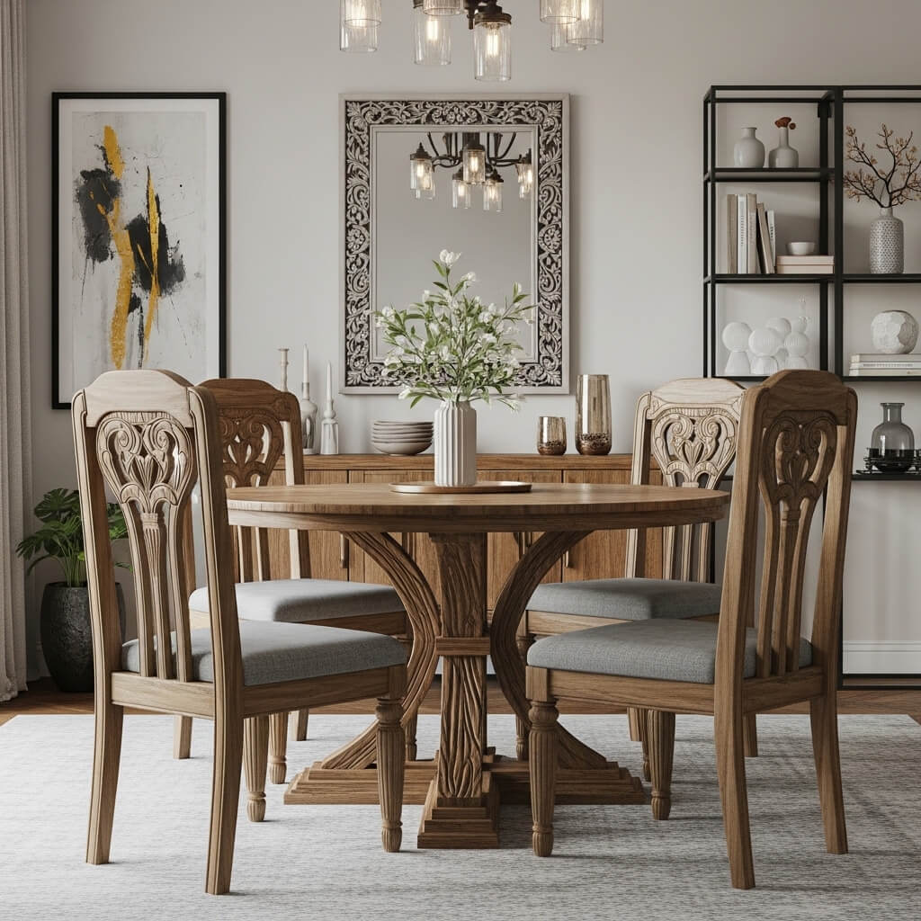 I swapped my boring dining chairs for carved teakwood ones, completely transforming the room.