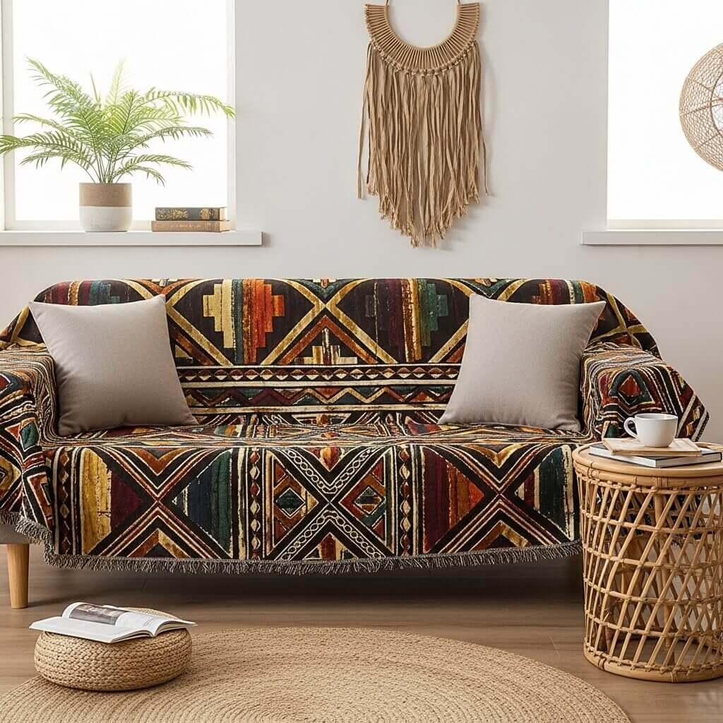 - Layer authentic mudcloth textiles: Drape them over your boring accent chairs.