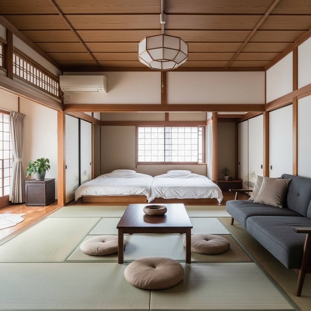 Modern Japandi architecture embraces this by incorporating low-profile furniture.