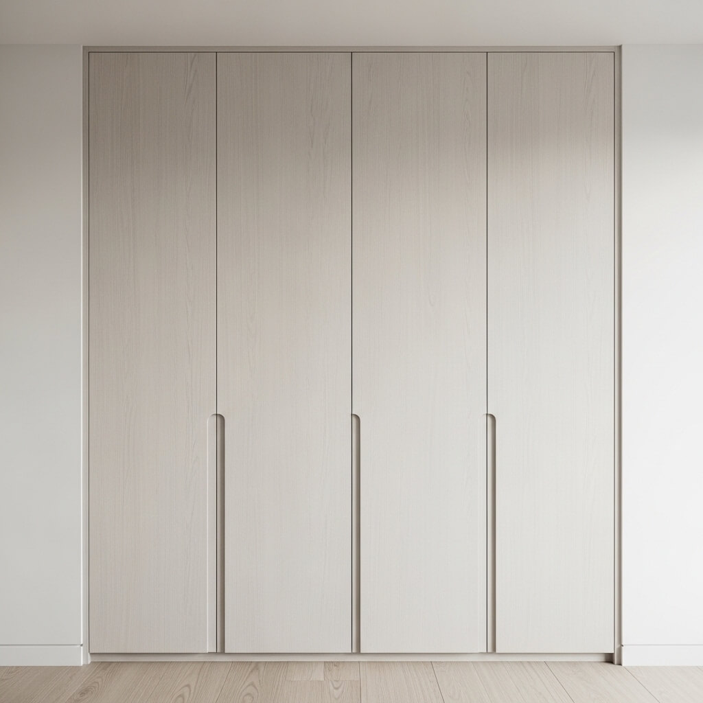 Omit traditional hardware entirely; opt for push-to-open mechanisms or integrated, routed finger pulls.