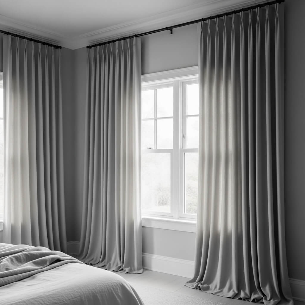 Window treatments are key to a cozy, luxurious bedroom.
