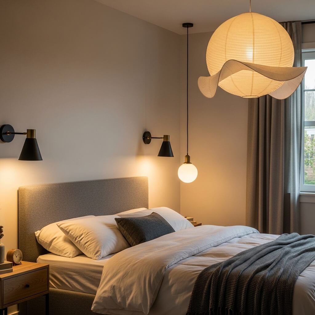 • The Statement Pendant: Swap out standard fixtures for a sculptural pendant light—like a large paper lantern.