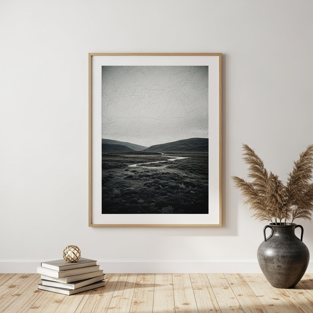 • The Frame: Use a thin, minimalist frame in raw oak or matte black. This draws attention without overwhelming the space.