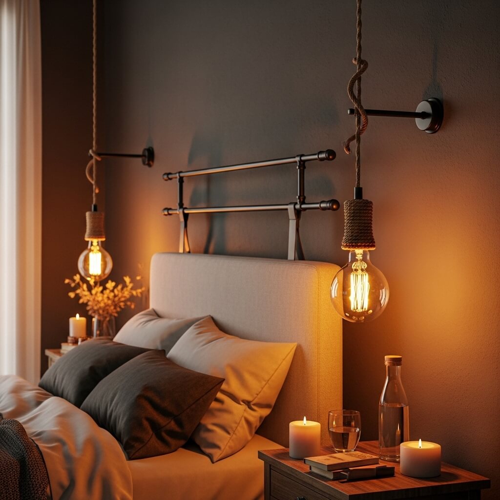 For fans of rustic, DIY, and cottage-core styles, this lighting idea adds country charm to any bedroom.