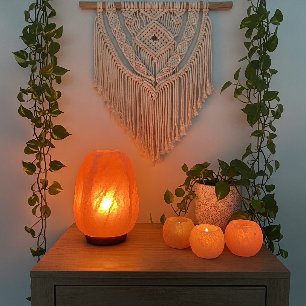 - How to Style It: Put a medium salt lamp on a wooden bedside table, or group smaller salt tea-light holders on a dresser. They look great with bohemian decor, macrame wall hangings, and trailing plants like pothos or ivy.