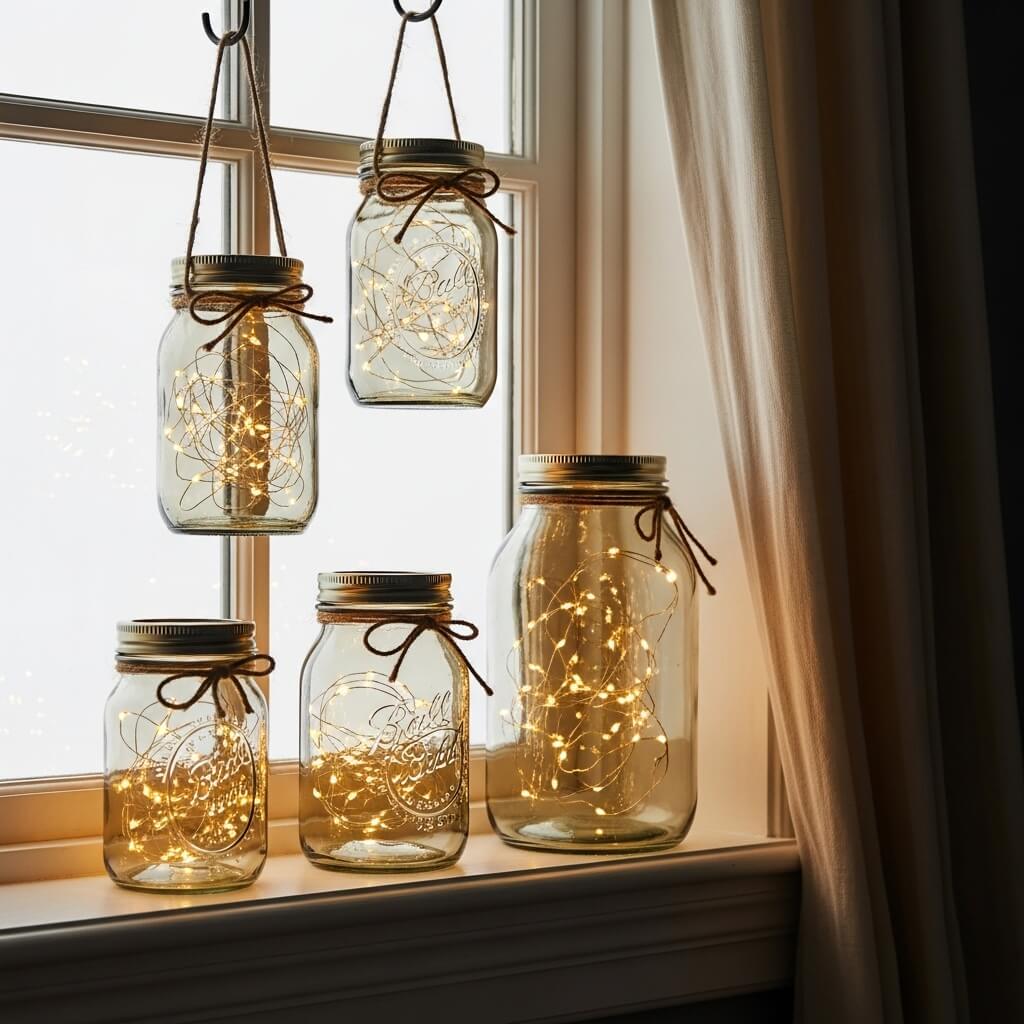 - How to Style It: Hang the jars from decorative wall hooks with rustic twine, or arrange different-sized jars on your windowsill. For added romance, choose lightly frosted jars to scatter and soften the light.