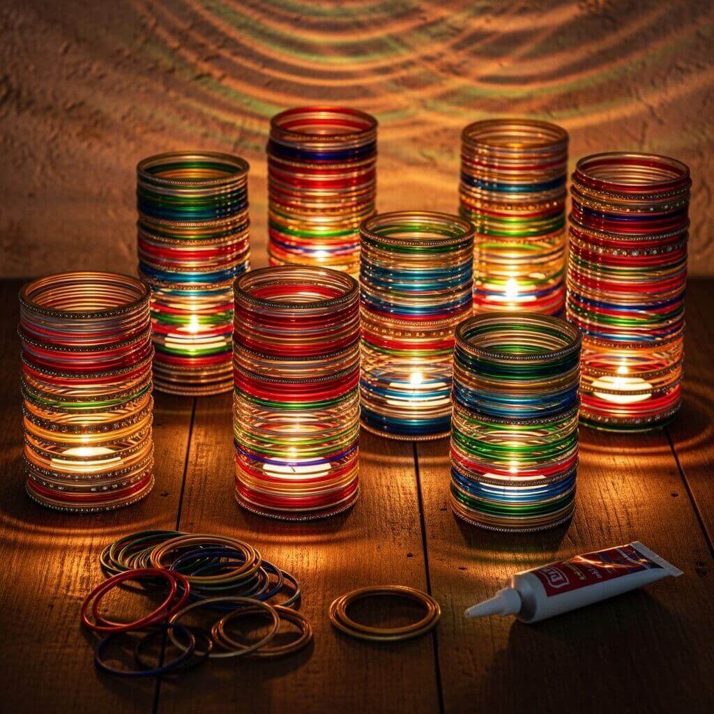 You repurpose old jewelry to create stunning diwali candle holders.