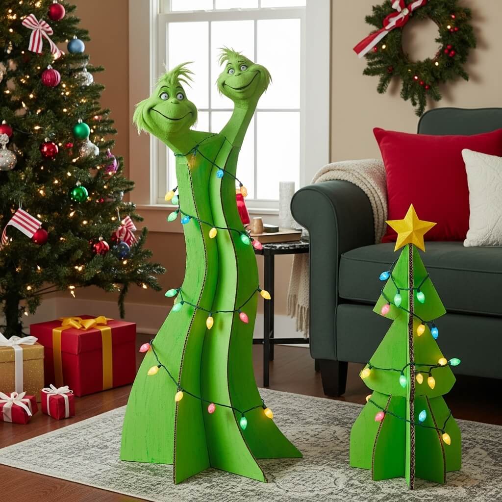 You can create whimsical whoville christmas decorations using simple cardboard crafts.