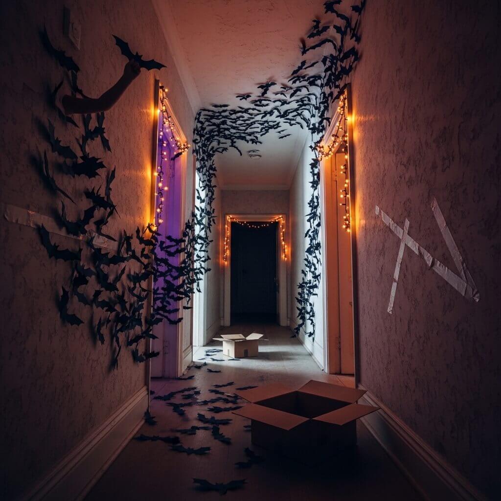 • Tape the black bats across your interior hallway walls.