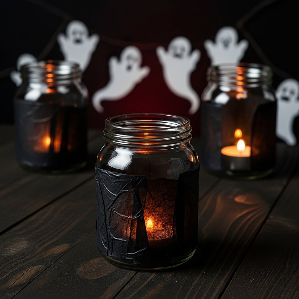 • Wrap empty mason jars in black tissue paper.