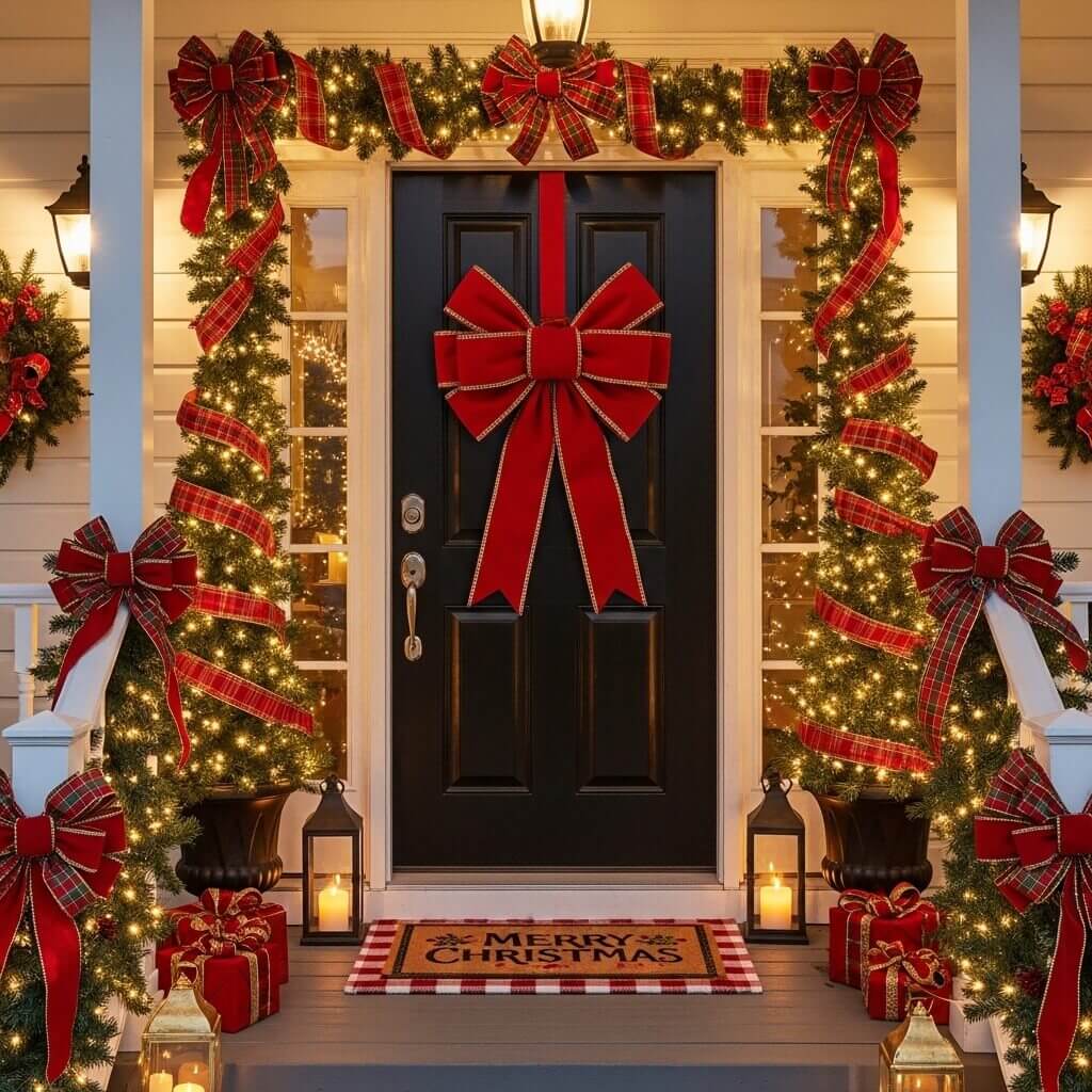 Me too. You design an easy christmas front porch using oversized ribbon crafts.