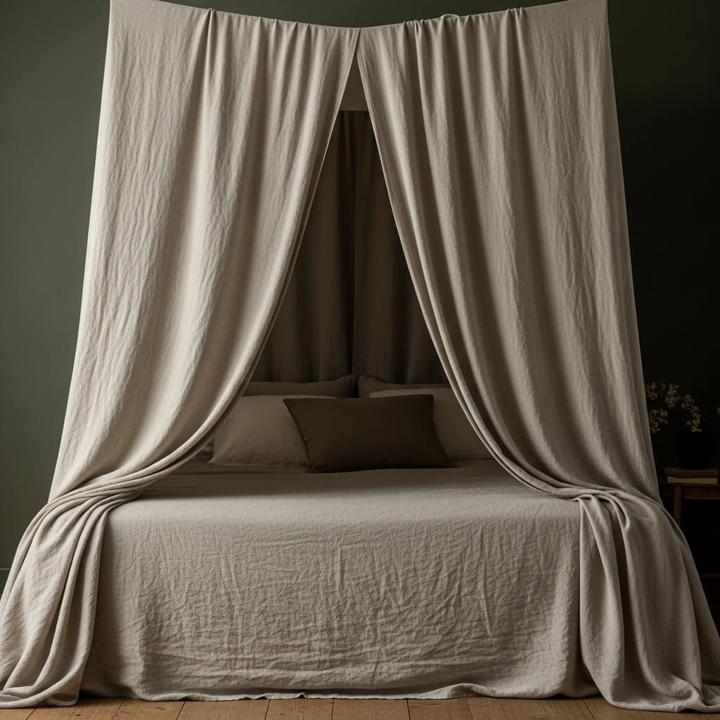 • The Execution: Don’t cover the entire bed. Drape the fabric over the top, letting it pool slightly at the corners. The earthy texture against dark green walls creates a stunning rustic contrast.