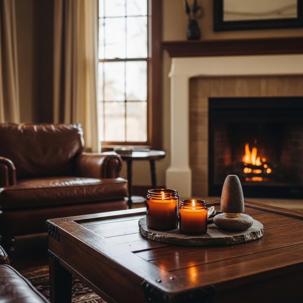 - The Scents: Avoid sweet florals or bright citrus. The room should smell grounding and slightly masculine.