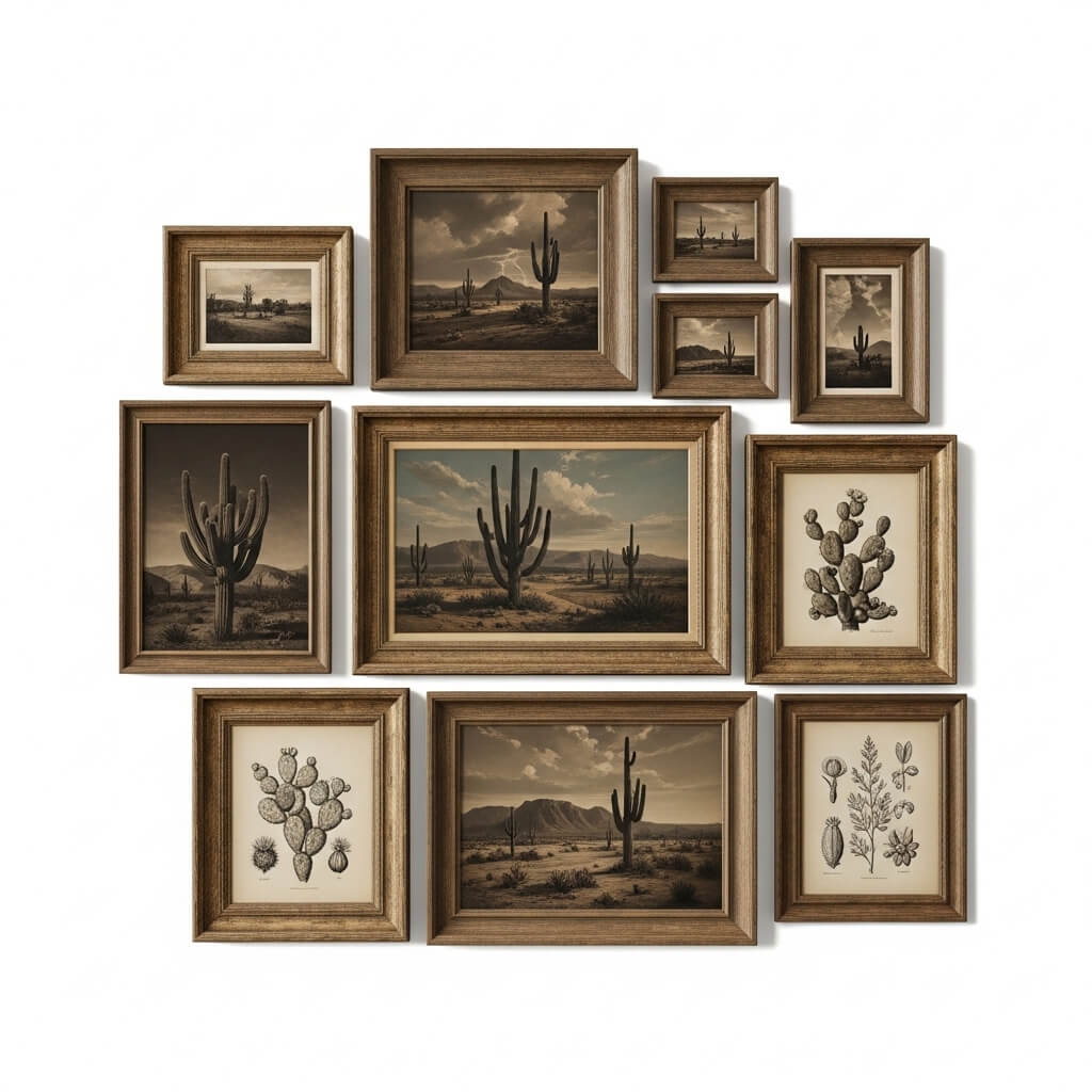 - The Subject Matter: Source vintage, sepia-toned photography of the American frontier, moody oil paintings of desert thunderstorms, or antique botanical sketches of cacti.