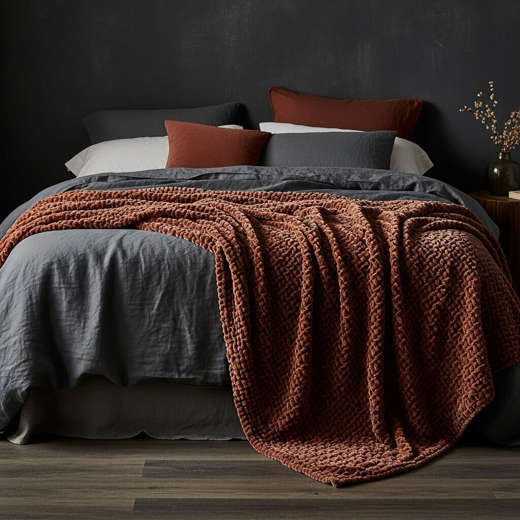 - The Luxury Layer: Toss a heavy, crushed velvet quilt or an oversized, chunky knit wool throw across the foot of the bed. The way velvet catches ambient light in a dark room adds a layer of vintage luxury that is incredibly inviting.
