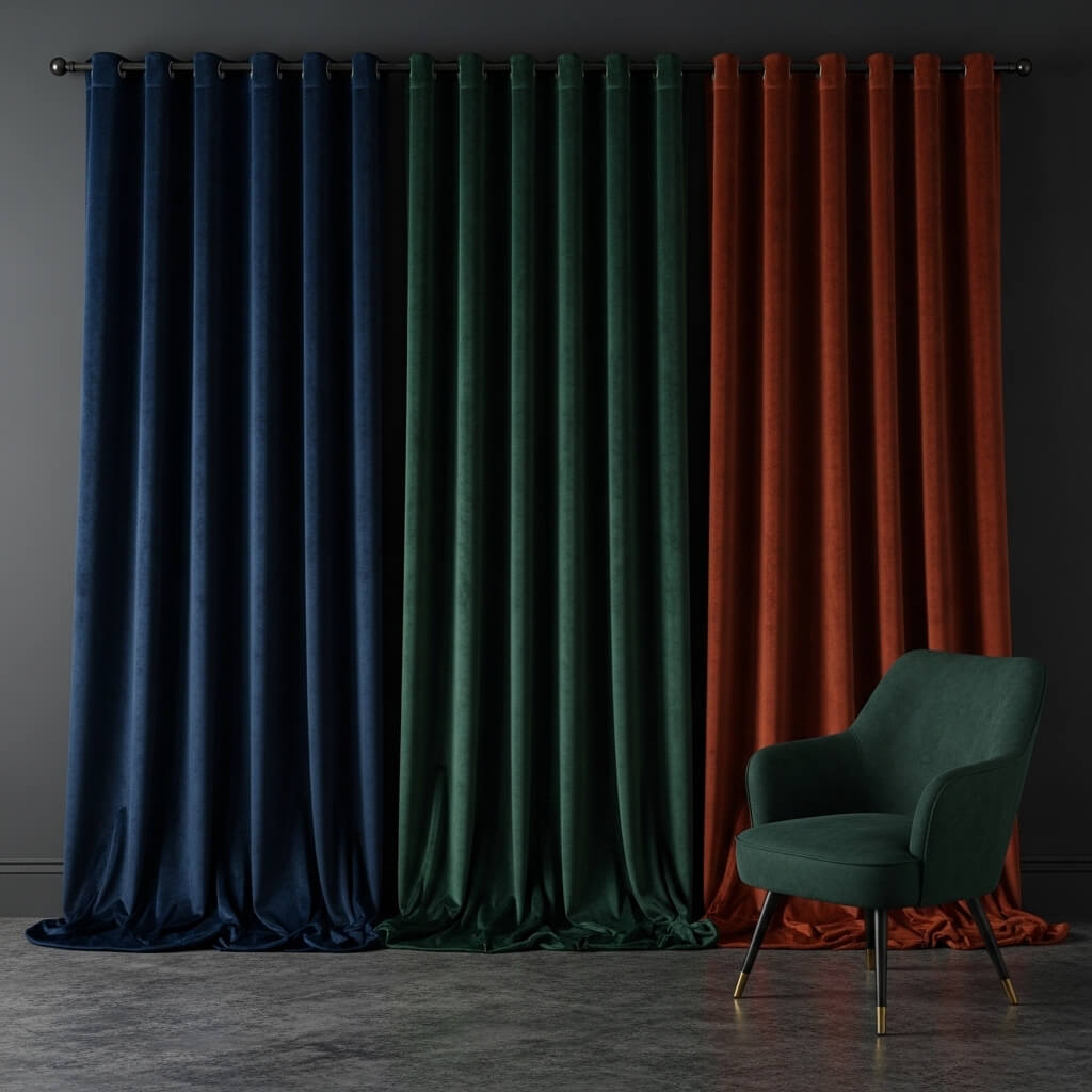 - The Drama: Mount the iron curtain rod as high to the ceiling as possible and let the velvet pool heavily on the floor. When pulled shut, these drapes absorb sound and light, completely sealing off the room and creating an absolute, uninterrupted sanctuary of coziness.