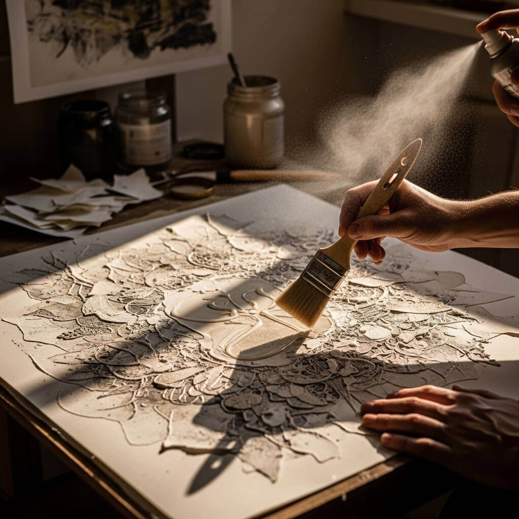 • Spray a heavy, thick matte sealer evenly across the entire textured surface.