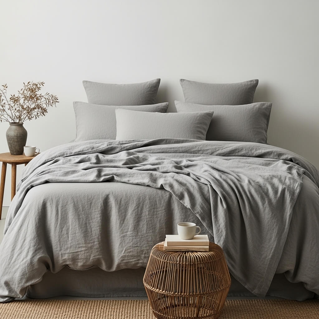 - The Styling: Skip decorative throw pillows. Use four standard sleeping pillows in matching linen shams, letting the duvet drape naturally for a relaxed feel.