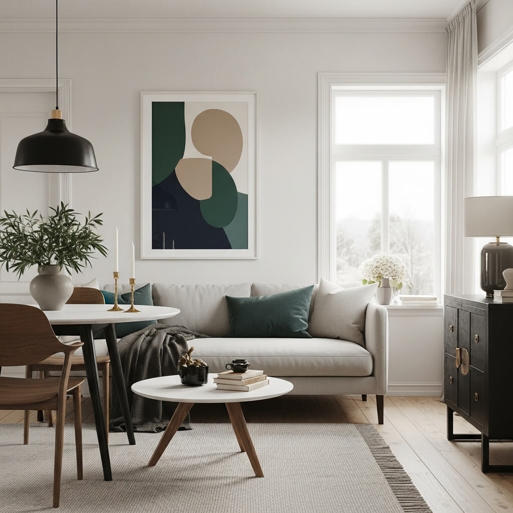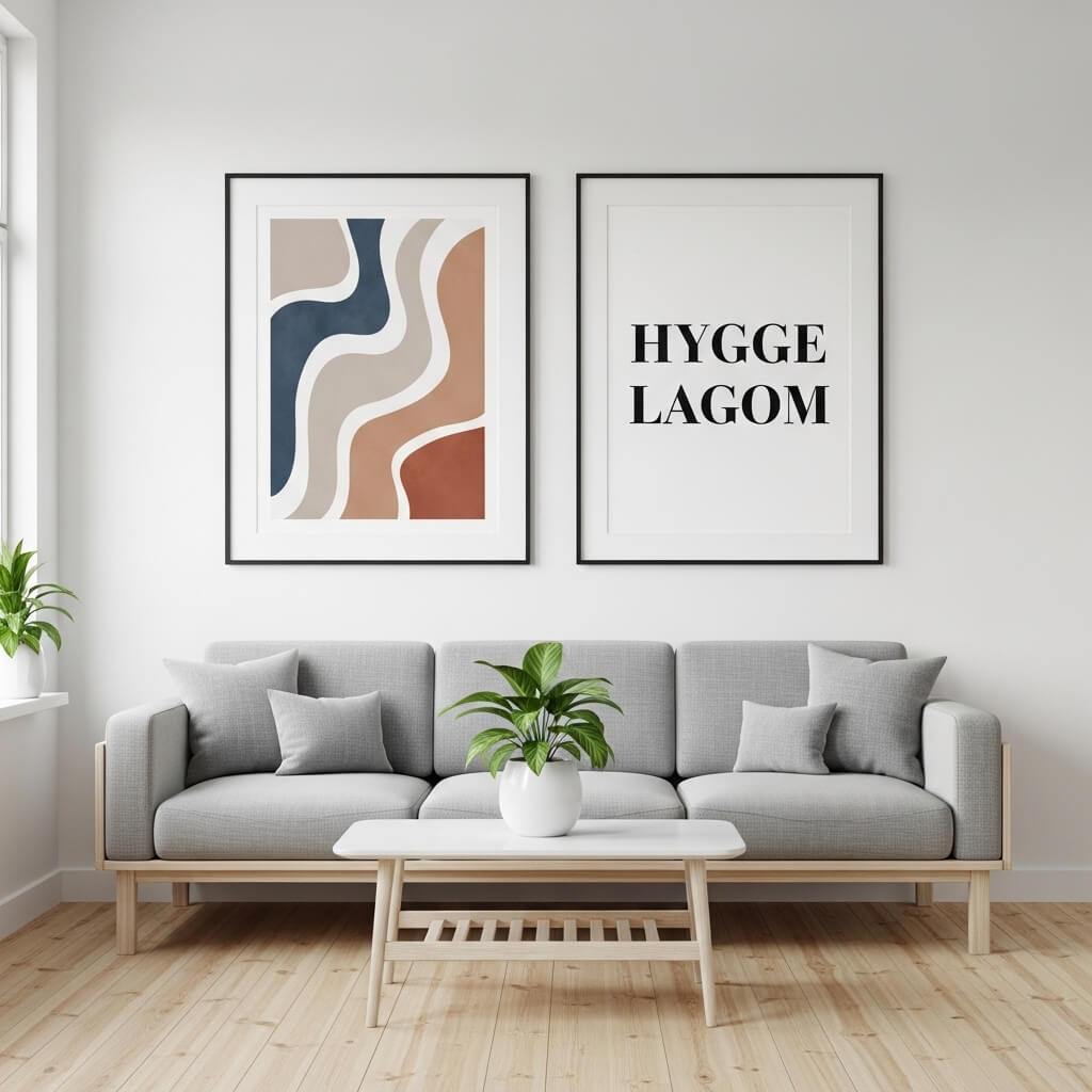 - The Style: Scandinavian art often features abstract shapes or high-contrast typography.