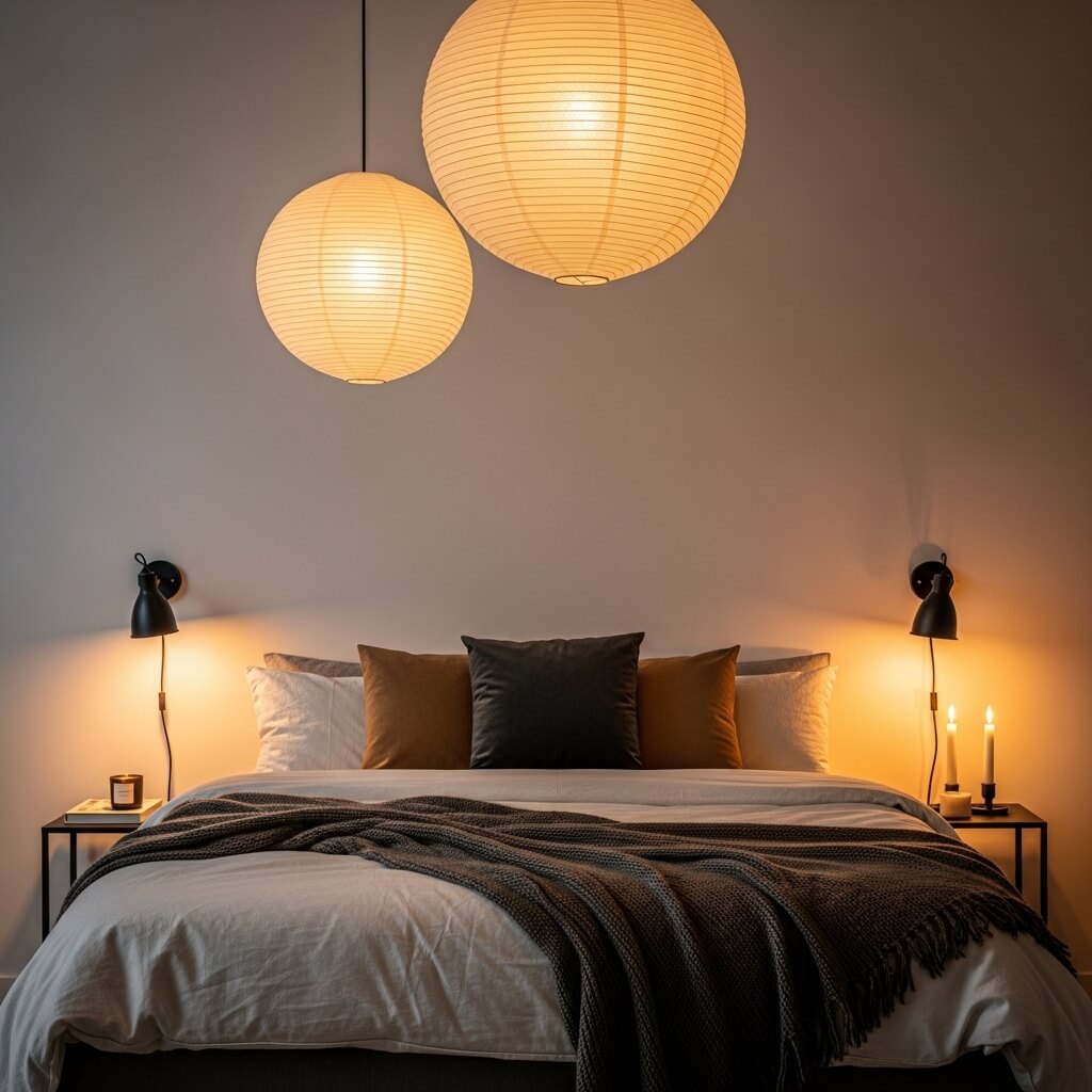 Lighting | Paper lanterns, ambient sconces, candles | Softens the room, reducing harsh shadows.