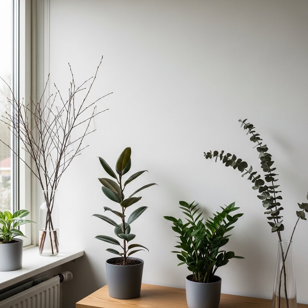 - The Plant Choice: Avoid chaotic indoor jungles. Choose one or two low-maintenance plants, like a Rubber Tree or ZZ plant.