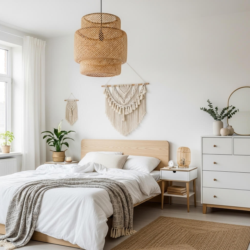 A popular variation mixes crisp Scandinavian design with warm boho decor.