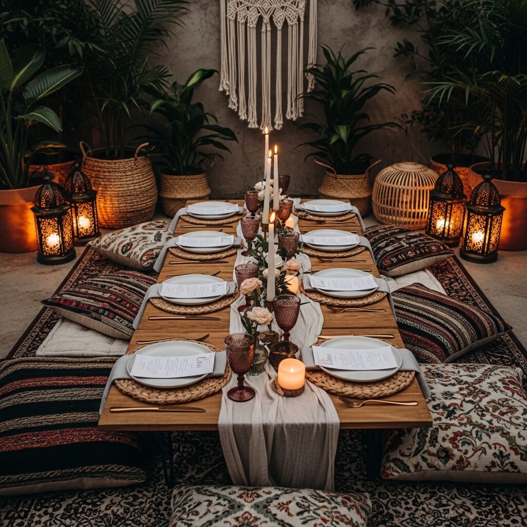 - The Setup: Use floor cushions instead of chairs. Incorporate potted plants around the dining area to create a “secret garden” feel.