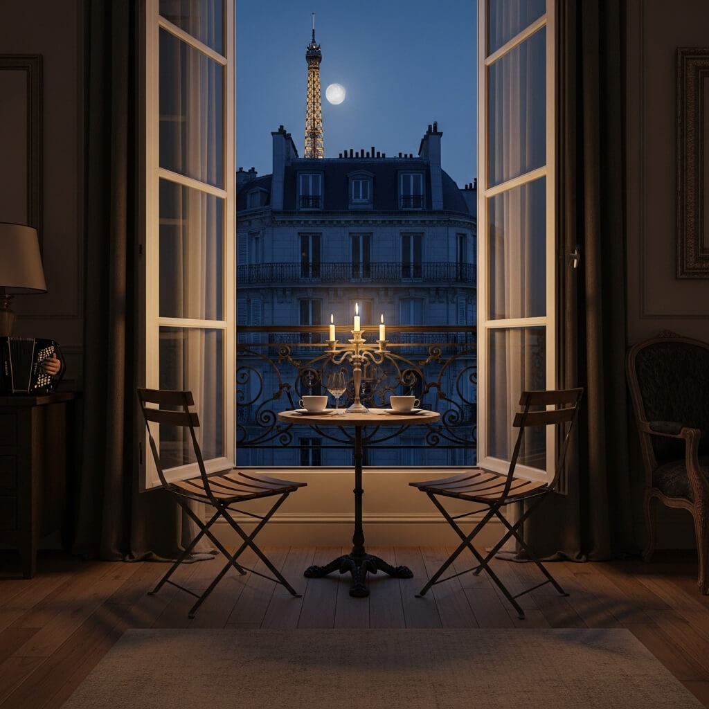 - The Soundtrack: Soft French jazz or accordion music playing quietly in the background.