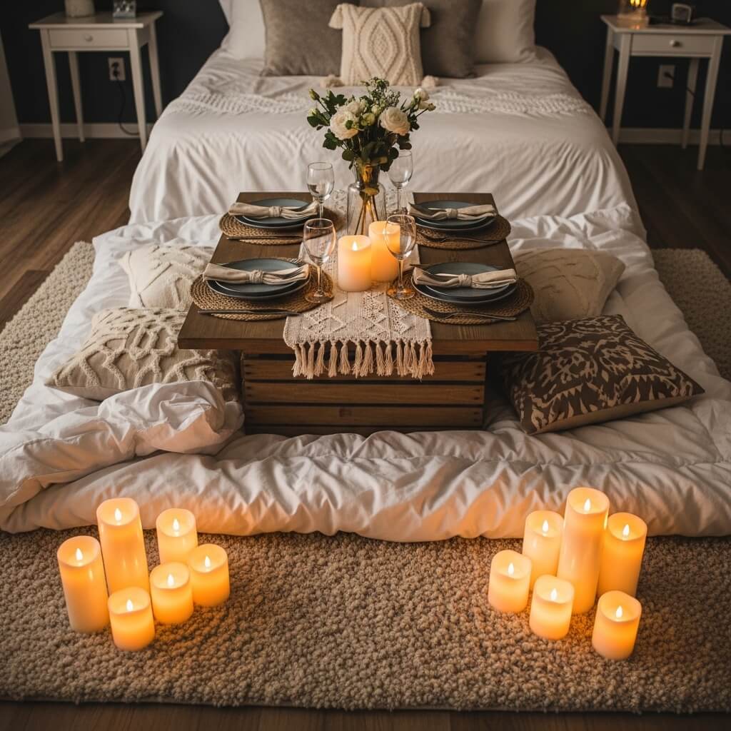 If you want to surprise your partner, celebrate an anniversary, or reignite the spark, a simple candlelit dinner in your bedroom is a perfect gesture.