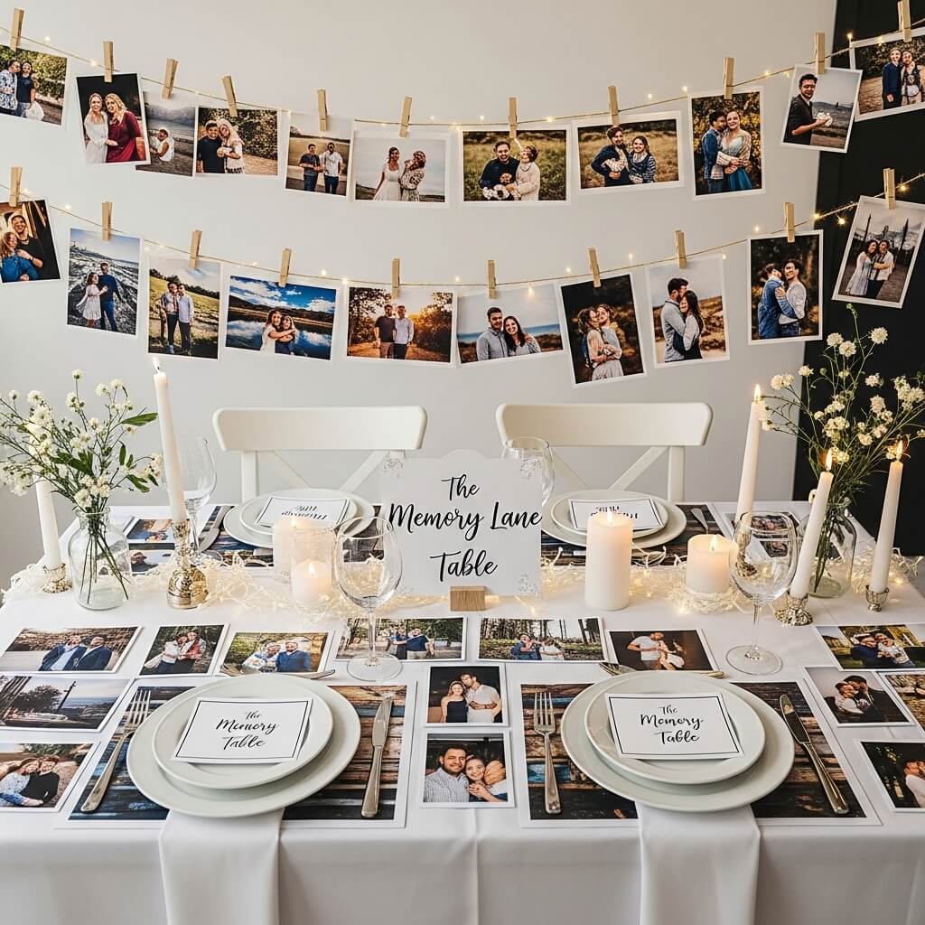 - The Setup: Use printed photos of your favorite memories as “place mats” or hang them from a string of lights above the table.