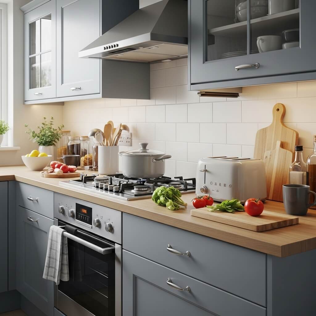 - Use stylish tiered trays: They instantly double your available counter space.