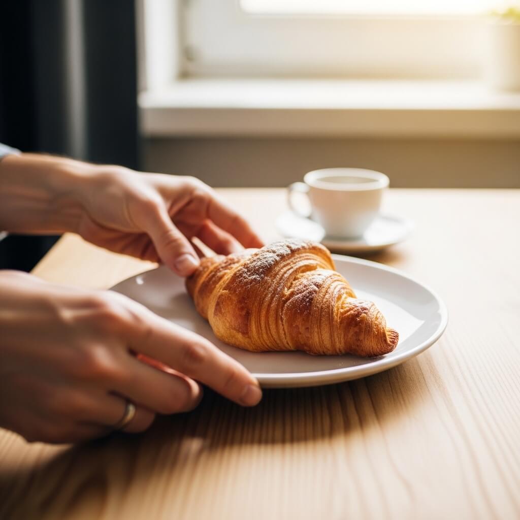 I set a timer to photograph myself grabbing a croissant!
