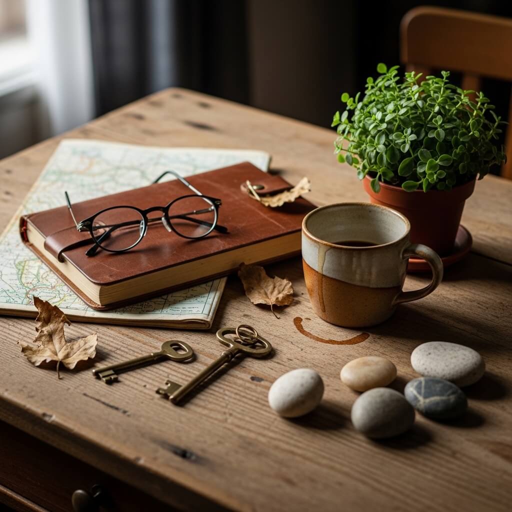 • Place an open vintage book casually near the main subject.
