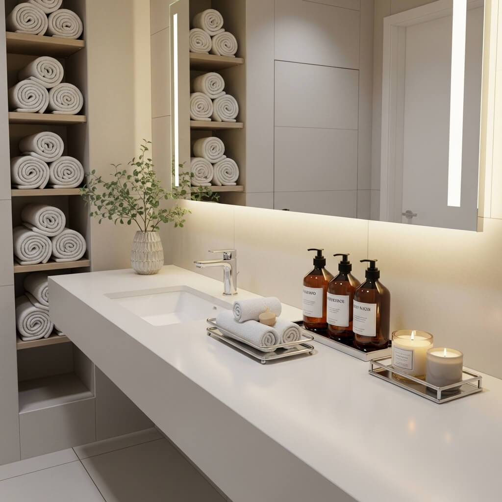 I keep my fluffy towels rolled up like a fancy hotel. You feel instantly relaxed.