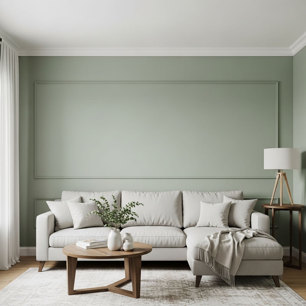 - Roll this herbal color directly onto your main focal wall.