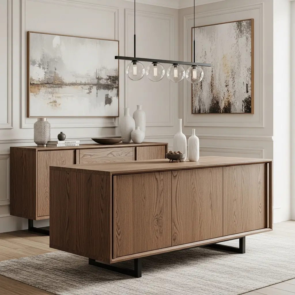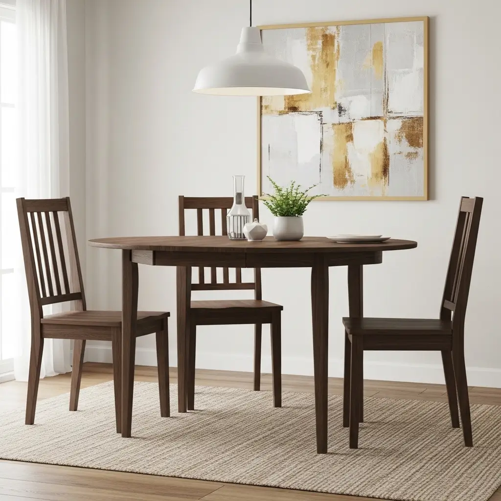 I heavily invest in solid Walnut and Dark oak to anchor my dining space securely.
