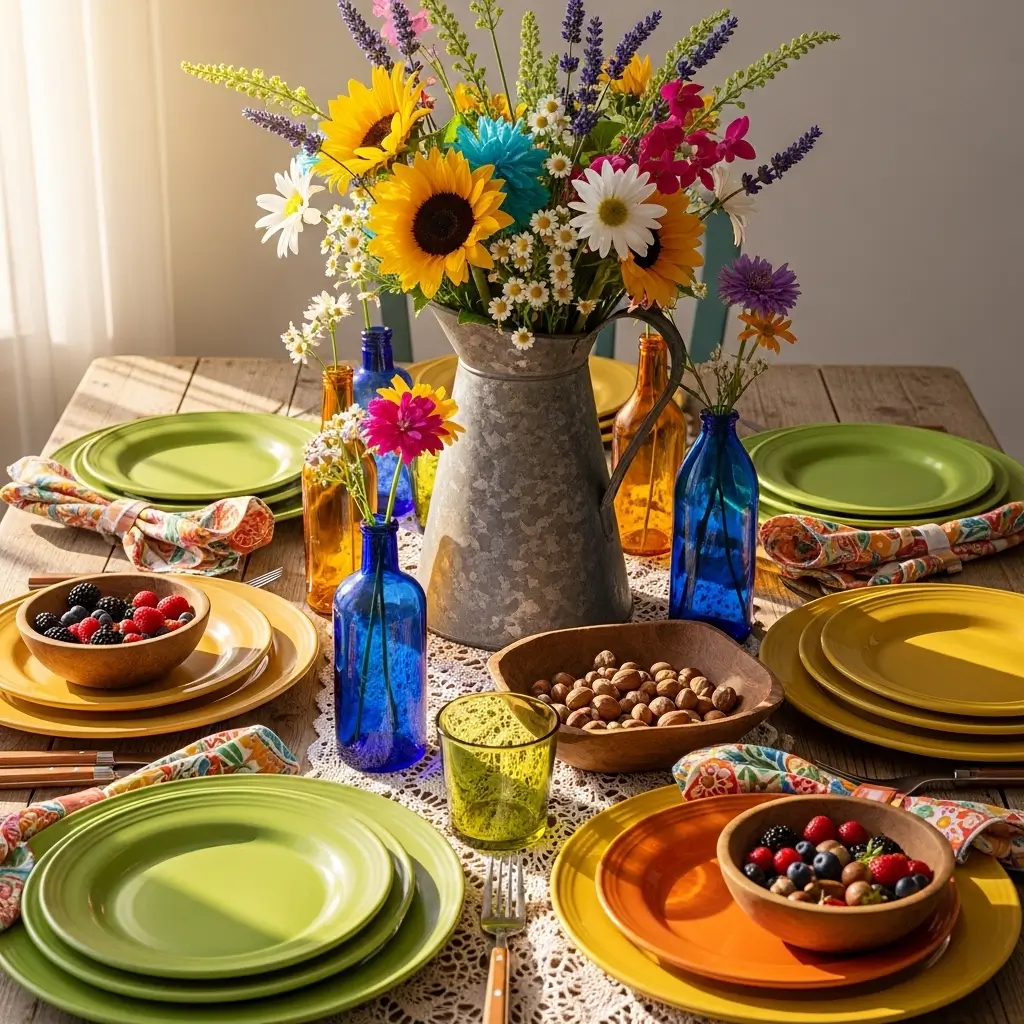 I joyfully mix Rustic farmhouse shapes with funky Retro colors to build a totally unique aesthetic.