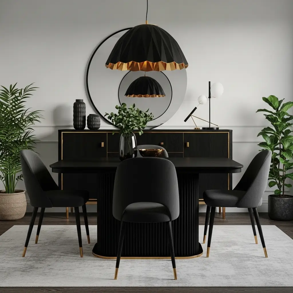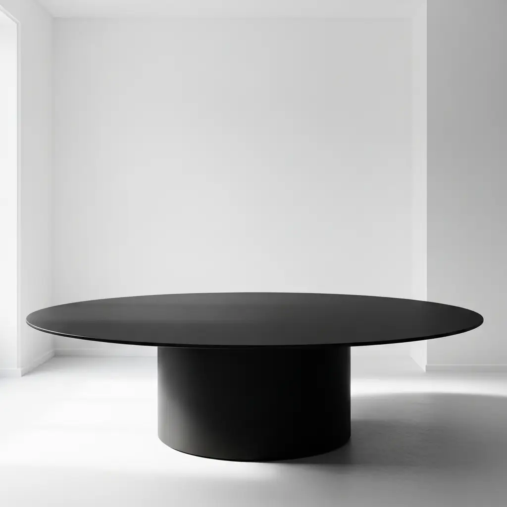 I enthusiastically mix a stark Black round table with crisp White walls to create intense visual drama.