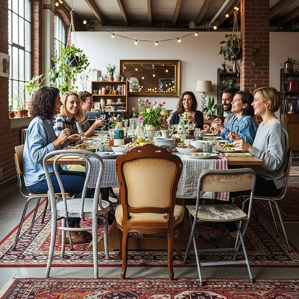 - Combine sleek modern metal chairs seamlessly with chunky, vintage wooden seats.