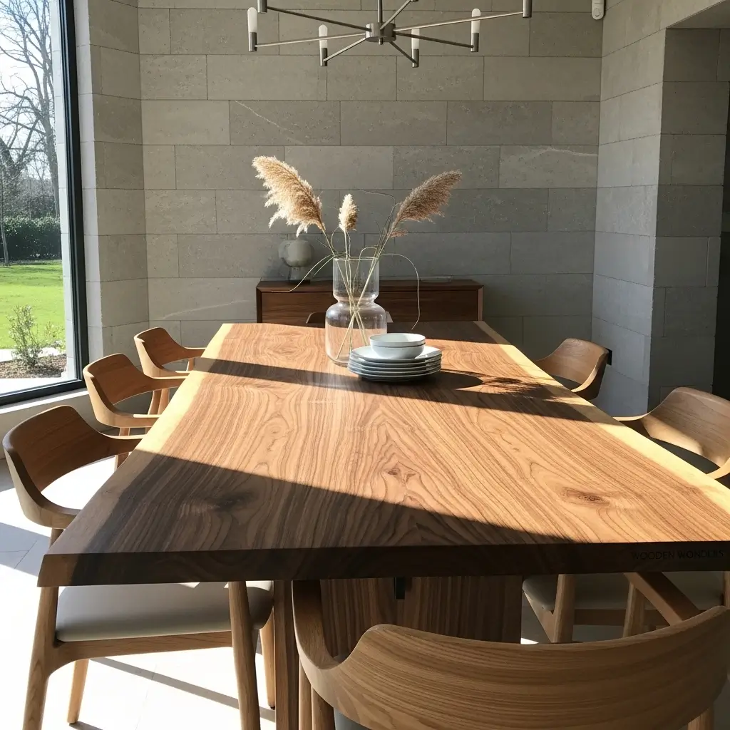 - Highlight the beautiful natural grain by using subtle overhead lighting to cast warm, inviting shadows.