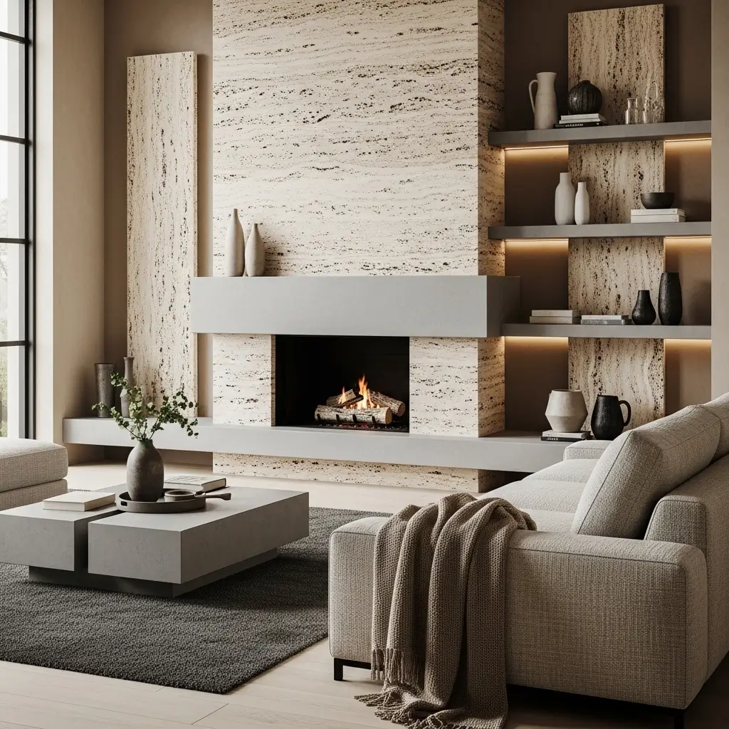 I heavily invest in genuine Travertin to capture true opulence.